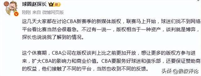 这几天大家都在讨论CBA新赛季的新媒体版权,联赛马上开始,球迷们找不到网络平台看比赛当然会很着急。不过有一说一,版权相当于一种资产,谈判就是博弈,探长也说说我了解到的情况。