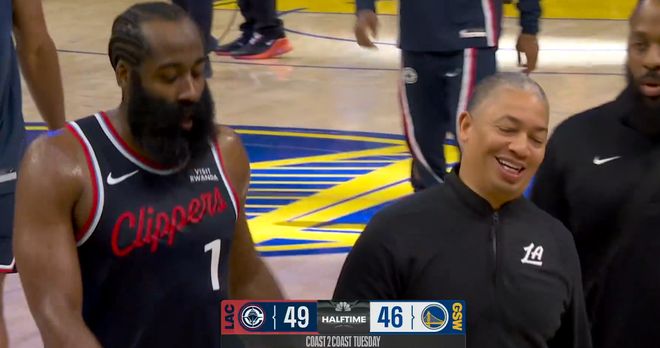 接下来鬼才卢指导撤下哈登伦纳德两大核心,换上保罗洛佩斯科林斯等替补,这波变阵无疑让快船更加雪上加霜,攻防两端陷入混乱,此时勇士三分再度回暖,快船单节让勇士打了一个32-14,三节落后63-78。